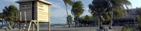 The windy beach Steve chose for kiteboarding. That's my perch up there in that lifeguard tower.