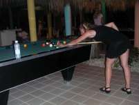 That dress only barely makes it for playing pool!