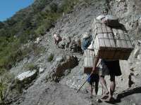 These guys carry heavy loads strapped to their foreheads along dirt paths in nothing but rubber flip flops.
