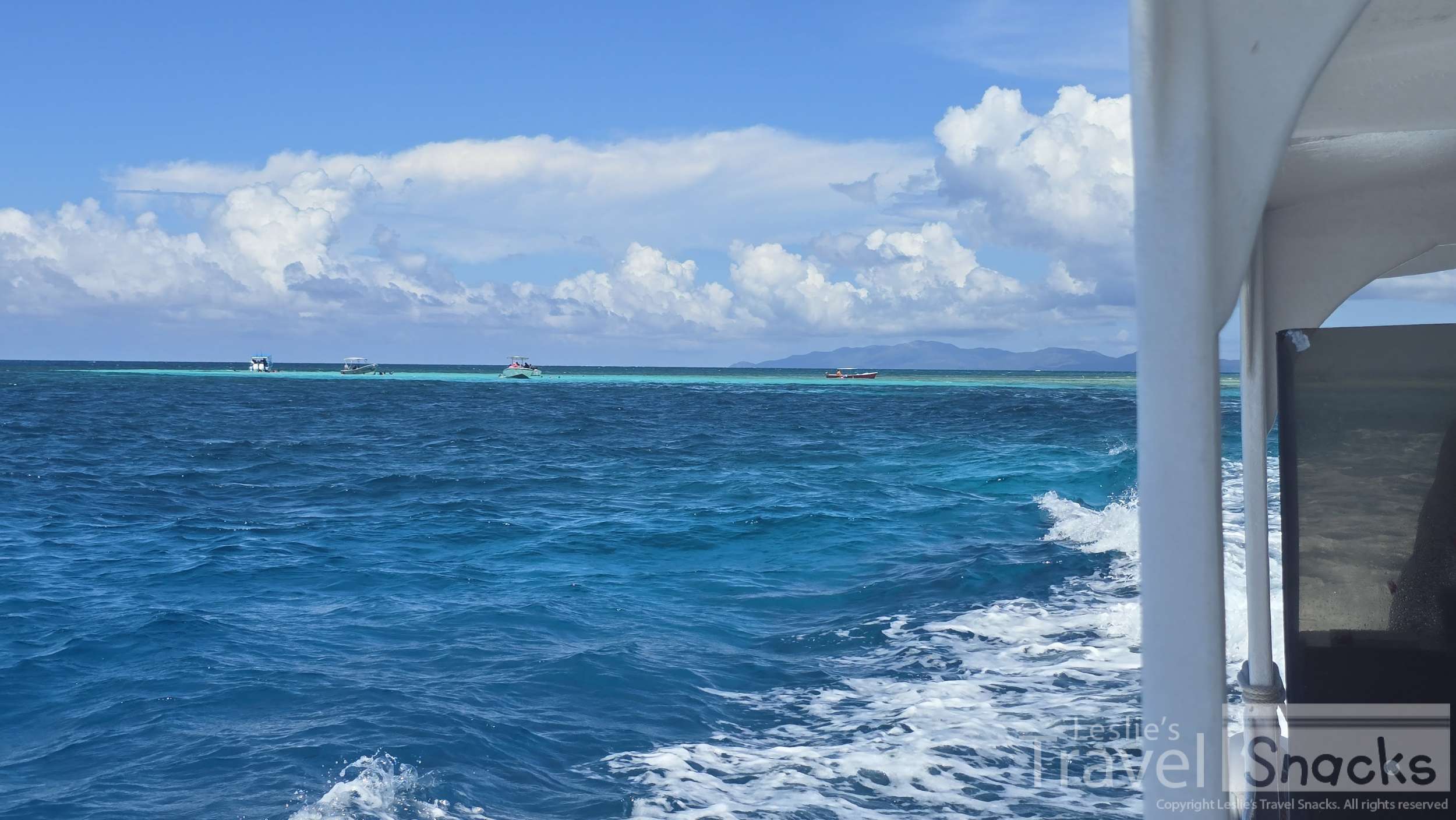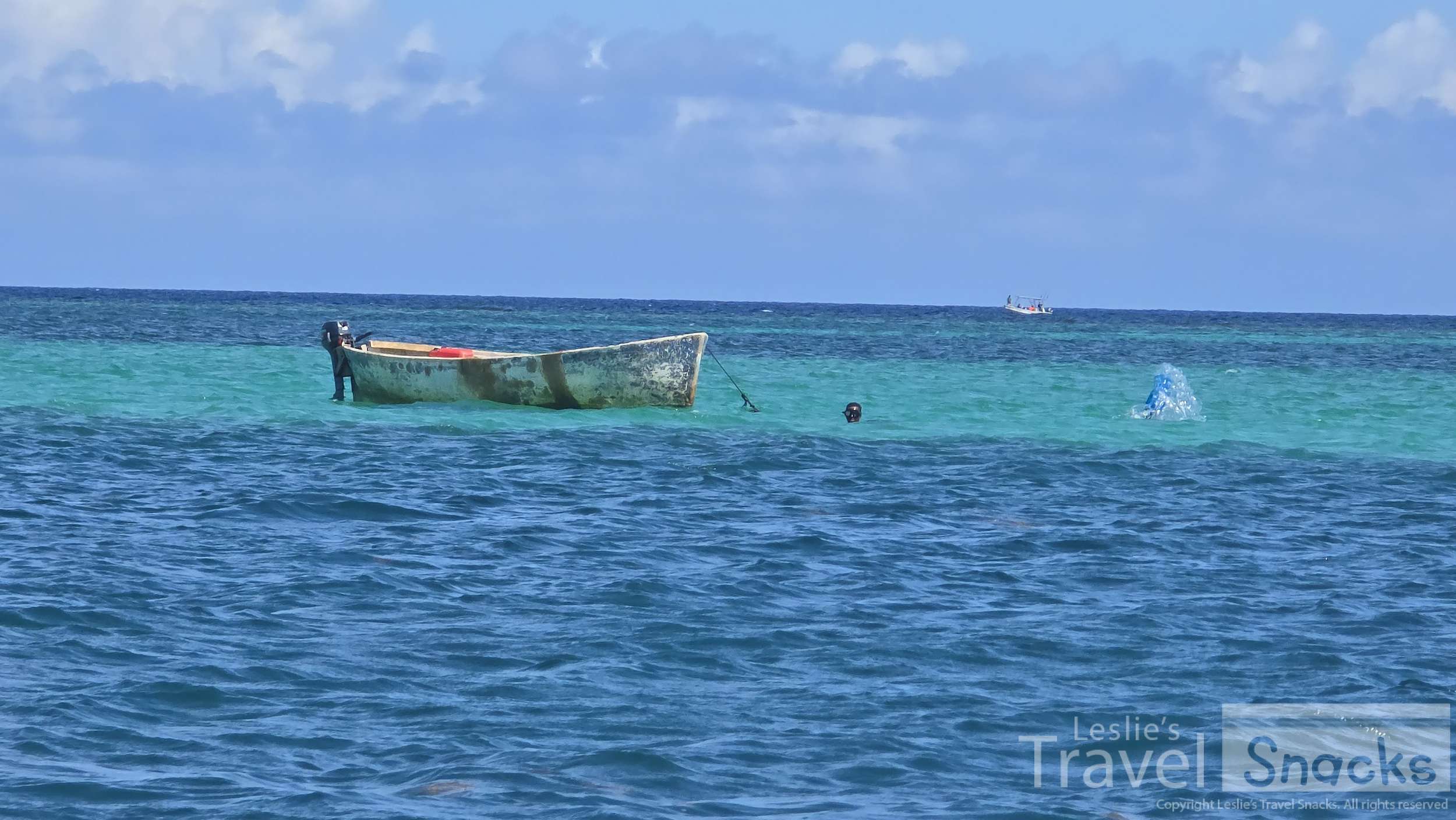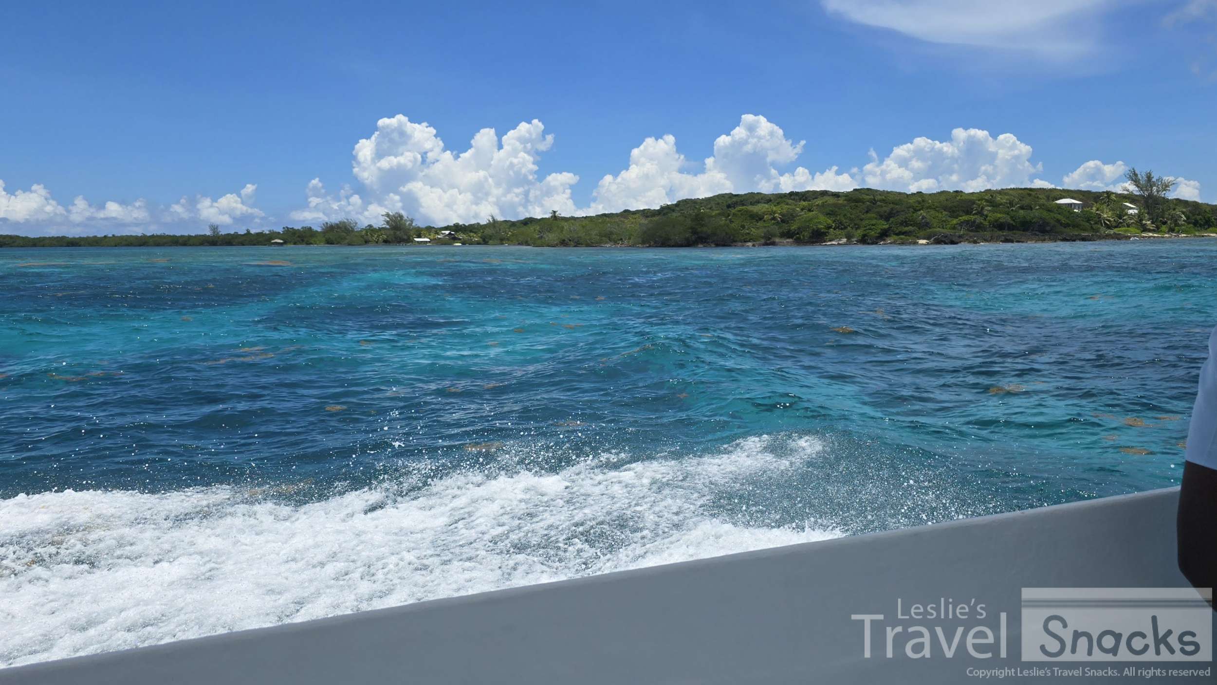 Exiting the channel, the swells picked up. Good thing we're in a 40 ft boat! It handled it like a champ. Nothing like last year's disaster of a whale shark tour. LOL Over a mile we went, past a few other Bay Islands, out past the tiny Fisherman's Cay and on to what used to be a raised sandbar; Pigeon Cay.