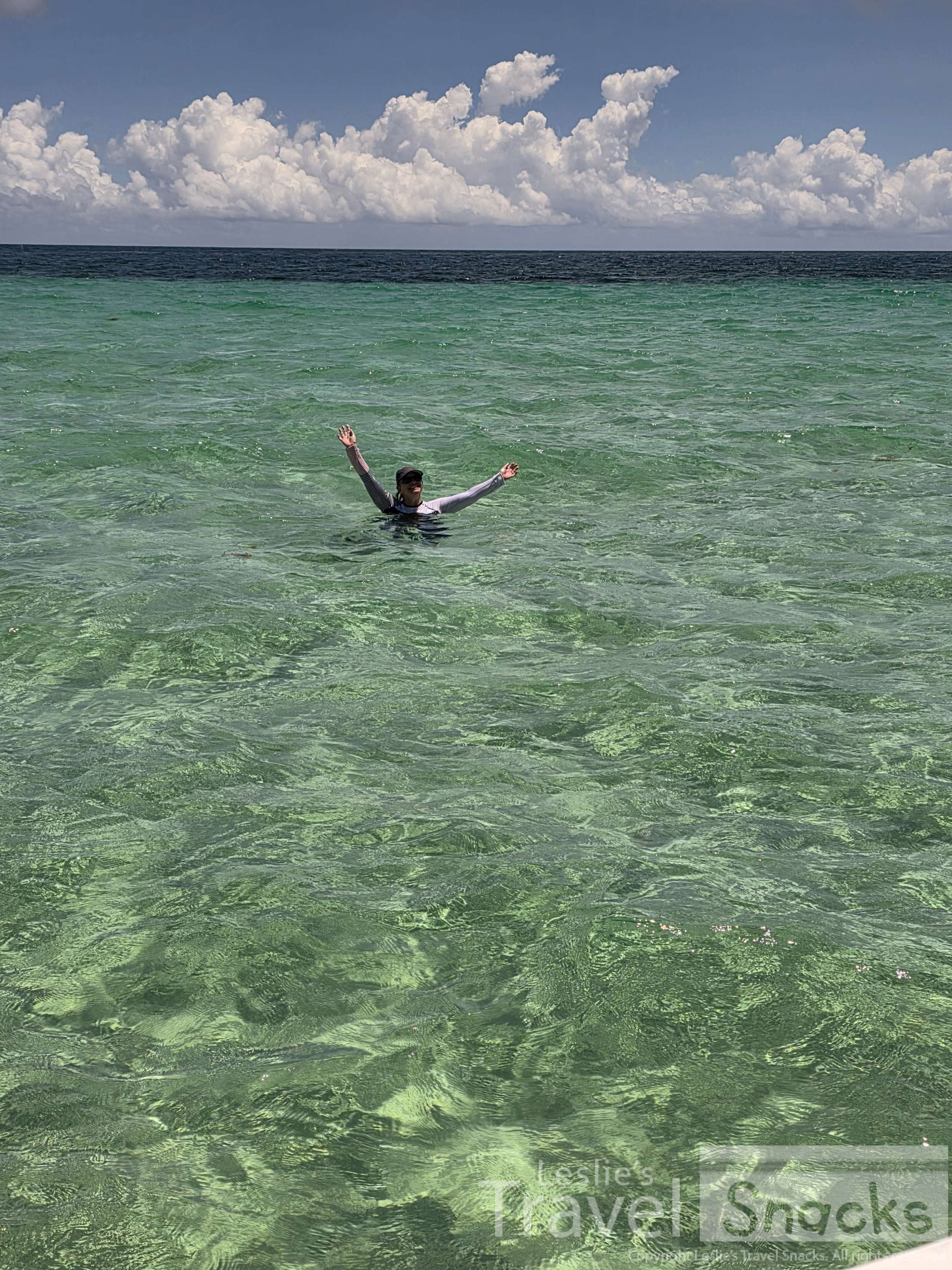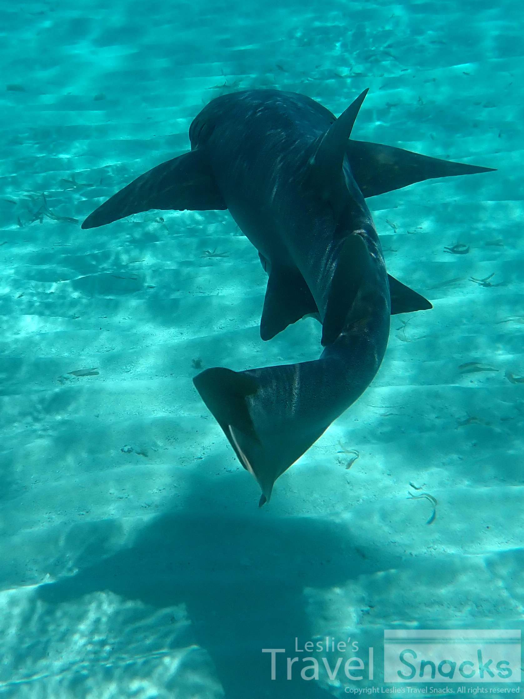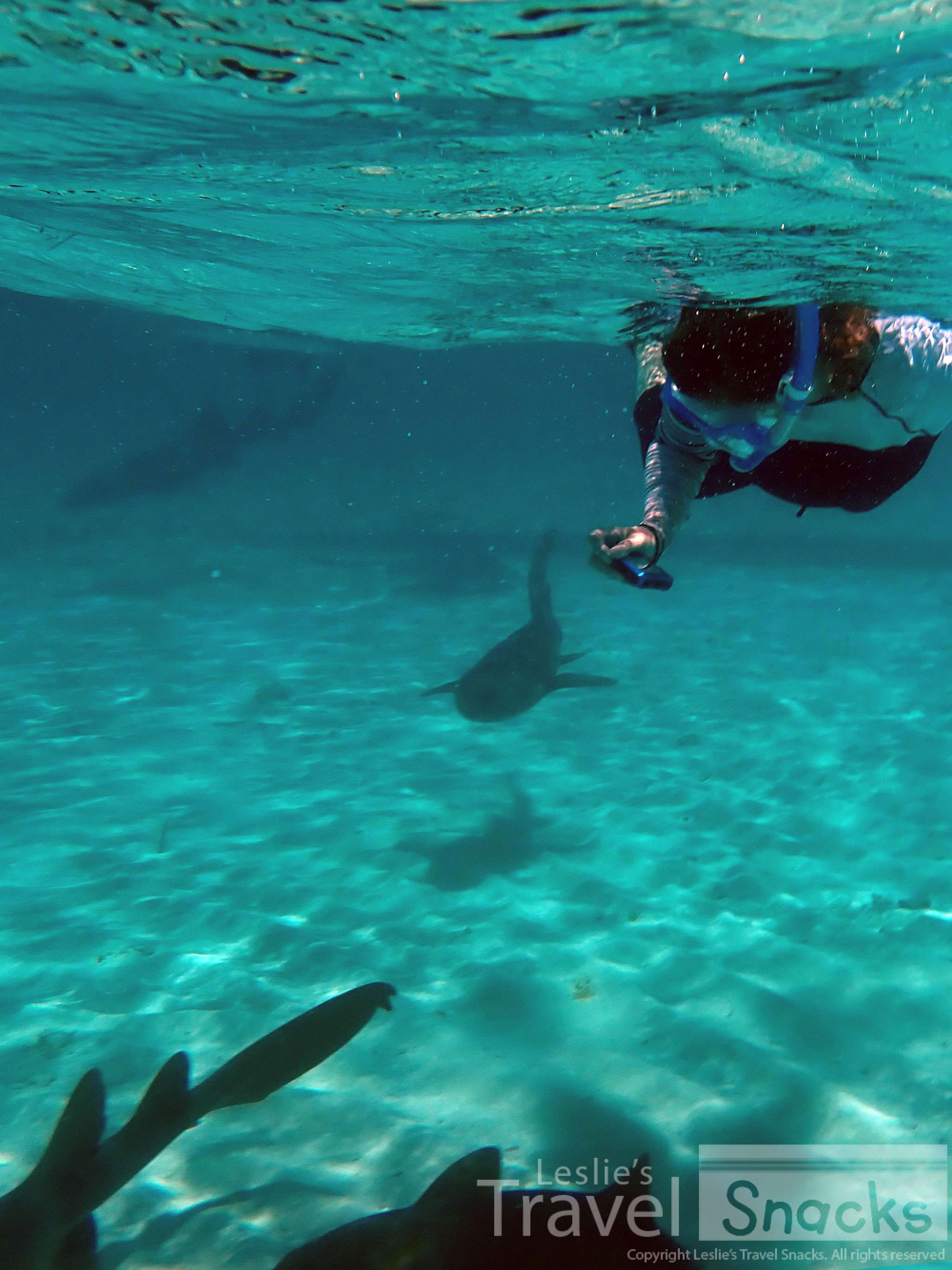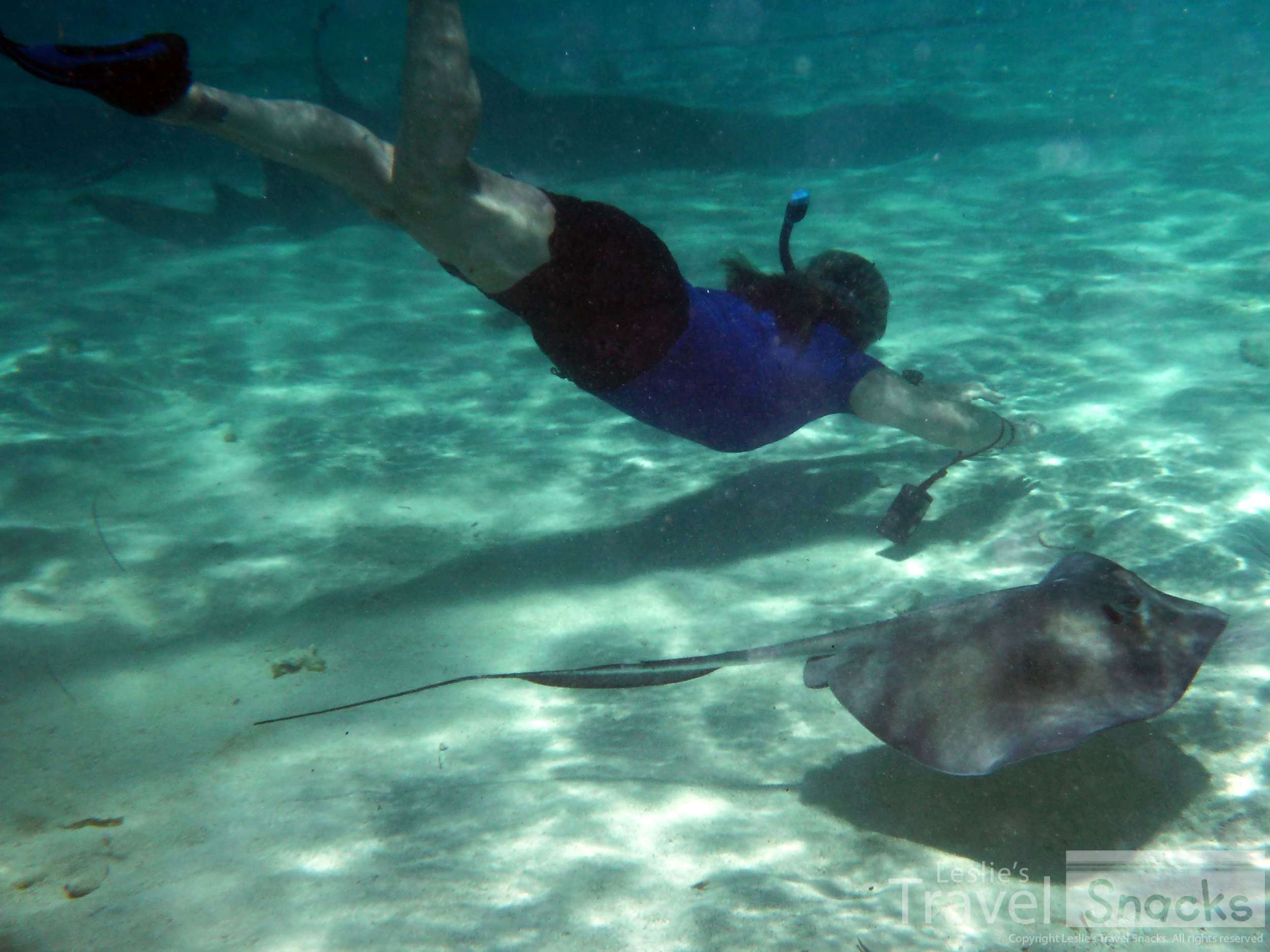 The color of the water! It never gets old. I was so afraid of hitting a ray or shark with my fin when I was up like this.