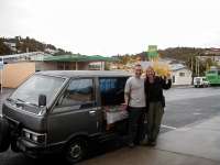 We spent the night in the parking lot in our van so we could get up early for the hot water.