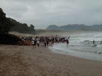 When the tide it out, everyone frantically starts digging. You don't have to dig down too far to get to the hot water and dig your own little hot pool.