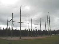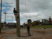 To the right is someone doing the final challenge about to leap for the trapeze.